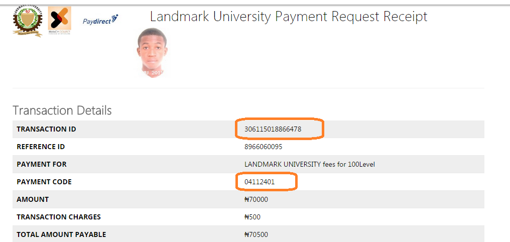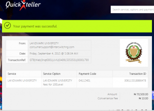 - Your payment transaction ID is generated with payment instruction, print the transaction slip and make payment through any of the three means provided.