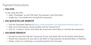 - Make payment on Quickteller site (http://quickteller.com).